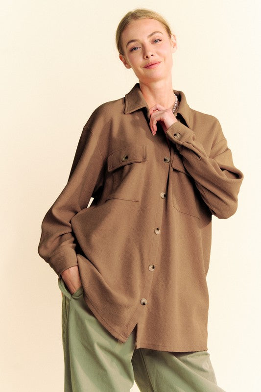 Davi & Dani Waffle-Knit Button Down Shirt