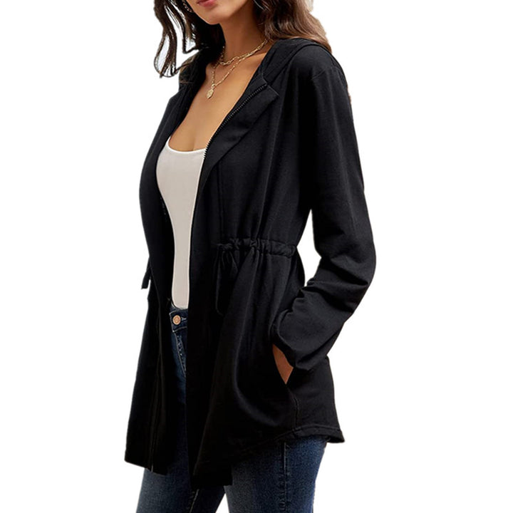 Zip-waisted Lantern Sleeve Loose Hooded Cardigan